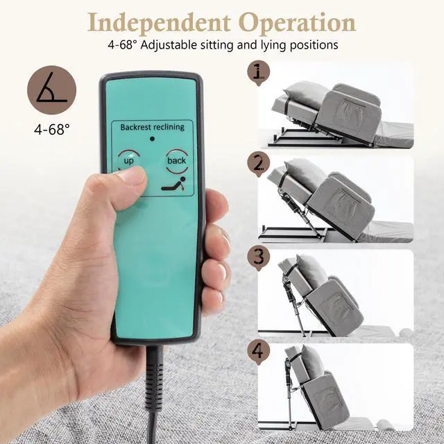 Universal Fit & Effortless Adjustment Experience ultimate relaxation at the touch of a button! Our user-friendly remote seamlessly adjusts the backrest to your ideal position (up to 68°) for reading, watching TV, or sleeping. Its versatile design fits any mattress size securely, and the included steel rails provide essential peace of mind, preventing slips and falls.