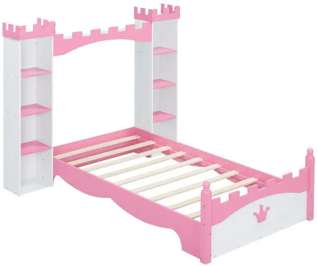 Lovely Bed: The footboard of this bed is also in the shape of a castle and has a small crown, which is very cute and interesting. You can decorate this bed with flowers and light strips to create a sense of atmosphere.