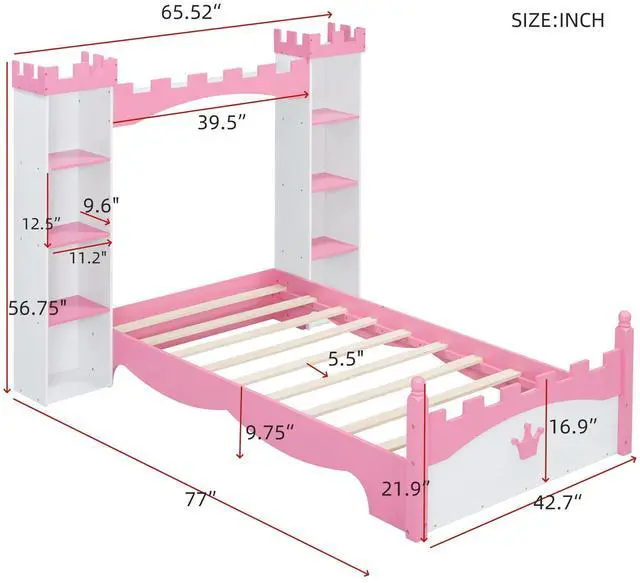 size: 77* 42.7 * 56.75 inch (L*W*H), Bed suitable for twin size mattresses. Easy to assemble.