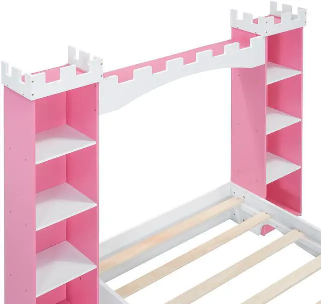 Storage Space: There are storage shelves on both sides of this bed, which can be used to place toys, books, etc. It has a large capacity and is very practical. It can become a secret base for children's storage.
