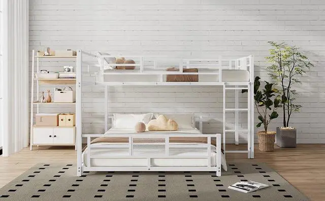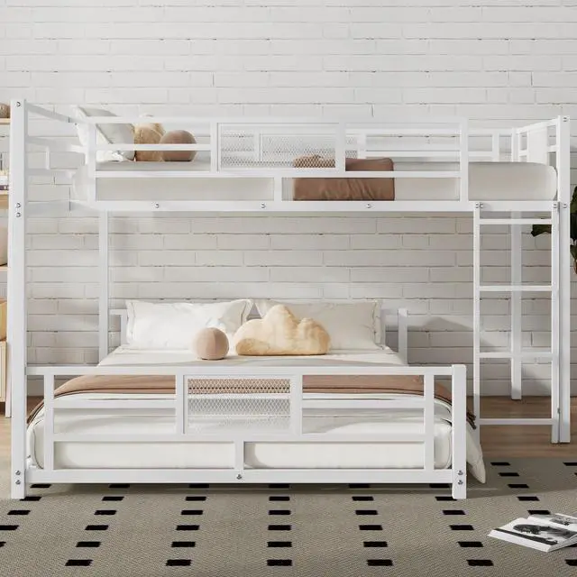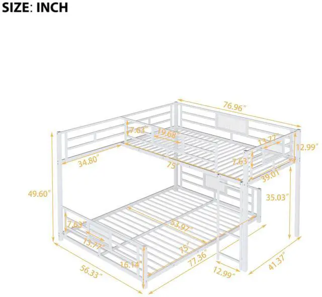 [Safety Guaranteed] Solid metal slats blend naturally into the already sturdy frame to give added ground-up support that provides stability. The bunk bed features guard rails for added safety.