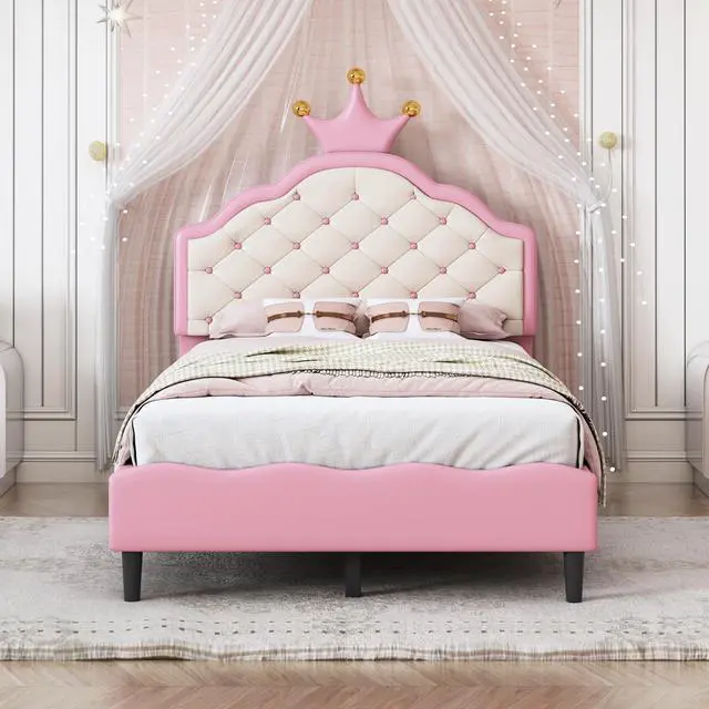 Crown Headboard Design: The headboard of this bed as a whole is crown-shaped, dreamy and lovely, cute girls will love it, and this bed can be integrated into most of the home decoration style.