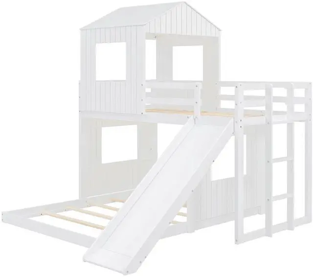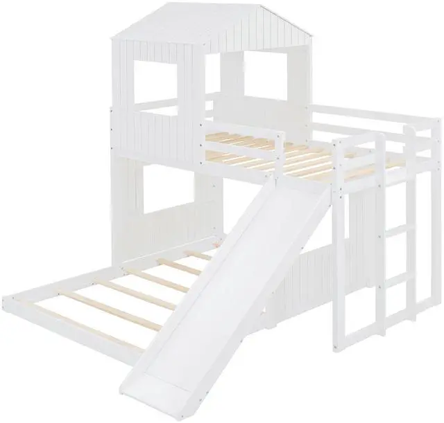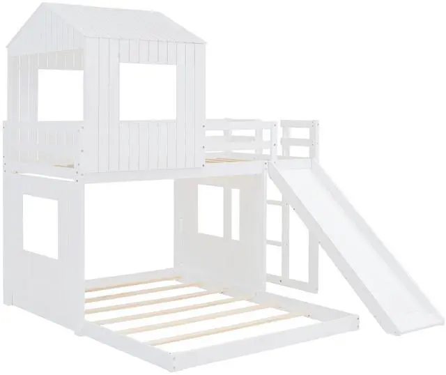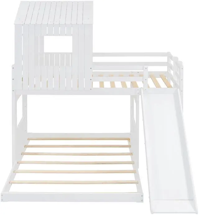 [Playhouse-inspired Style] Crafted with a whimsical playhouse design while maintaining a tasteful natural appeal using a neutral color scheme, this bunk bed offers family a comfortable and exhilarating experience during both sleep and playtime that will let their imaginations run wild. Perfect for hours of entertainment and relaxation, the playhouse design makes this bunk the perfect centerpiece for any family's bedroom.