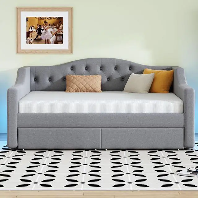 [Linen Upholstered Daybed] The high-quality upholstery with thickly padded sponge at the back and all sides offers cozy comfort. This Upholstered Daybed with covered linen provides soft hand feeling and get superior experience for you!