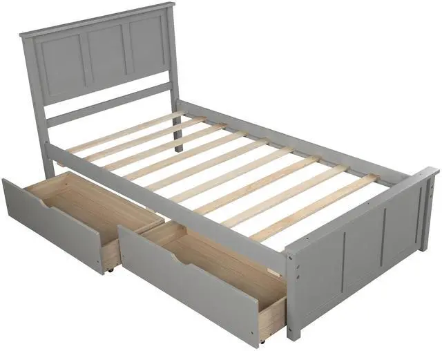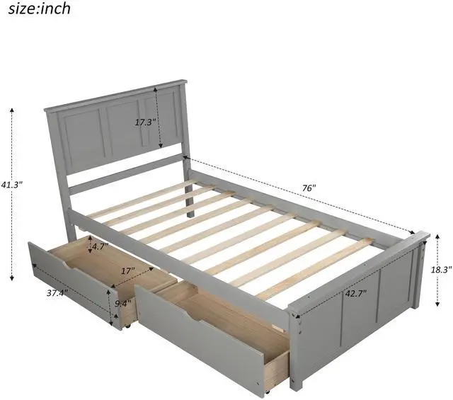 With two under-bed drawers: make full use of space. Sturdy and long-lasting: made of solid wood and MDF. Two drawers can be placed on either side of the bed. Assembly required. All parts included in your package are indicated clearly.