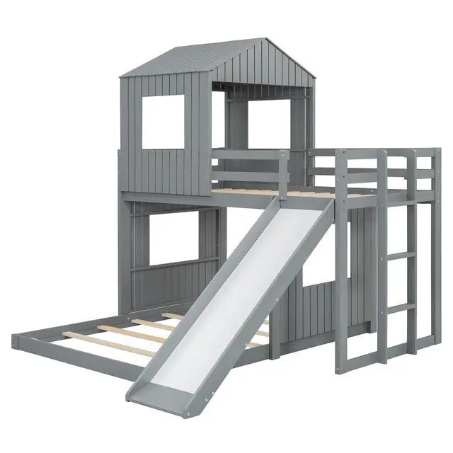 [Playhouse-inspired Style] Crafted with a whimsical playhouse design while maintaining a tasteful natural appeal using a neutral color scheme, this bunk bed offers family a comfortable and exhilarating experience during both sleep and playtime that will let their imaginations run wild. Perfect for hours of entertainment and relaxation, the playhouse design makes this bunk the perfect centerpiece for any family's bedroom.