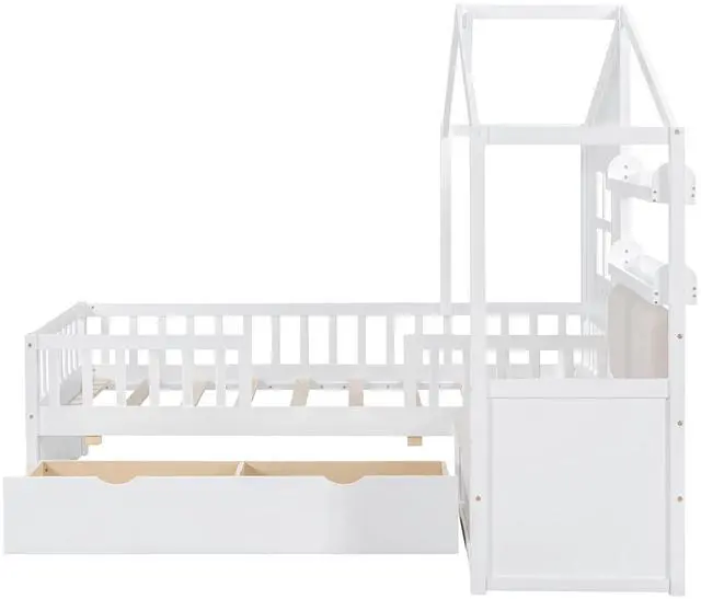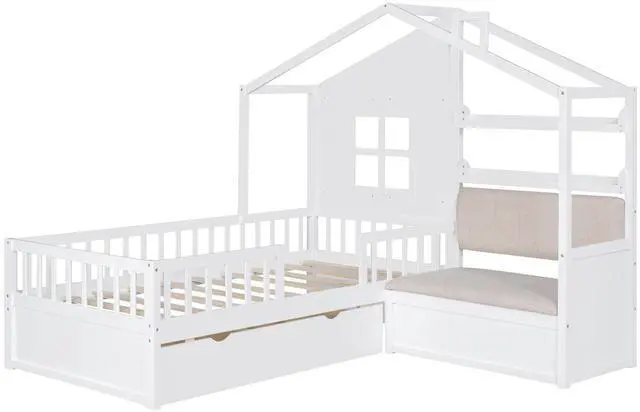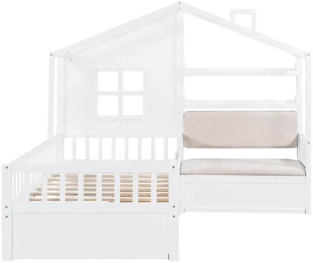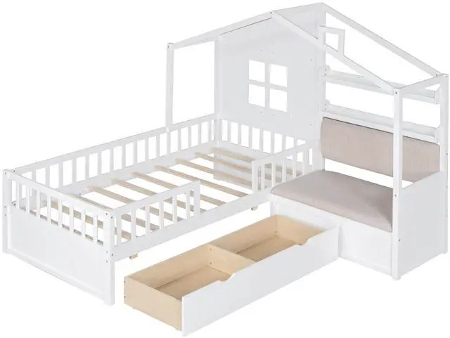 Superior Quality: The house bed is constructed with a sturdy pinewood frame that can enhance stability and durability. Slats are included, you do not need to prepare box springs or foundations. The linen of the sofa is soft and not easy to get dirty. Can accompany you for many years.
