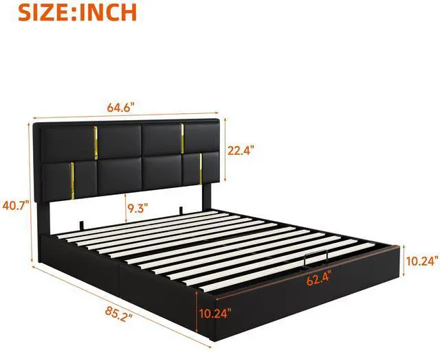 [Dimensions] Overall Dimension: 85.2 x 64.6 x 40.7 inches (L x W x H). Suitable for mattress Queen size (Mattress is not included)