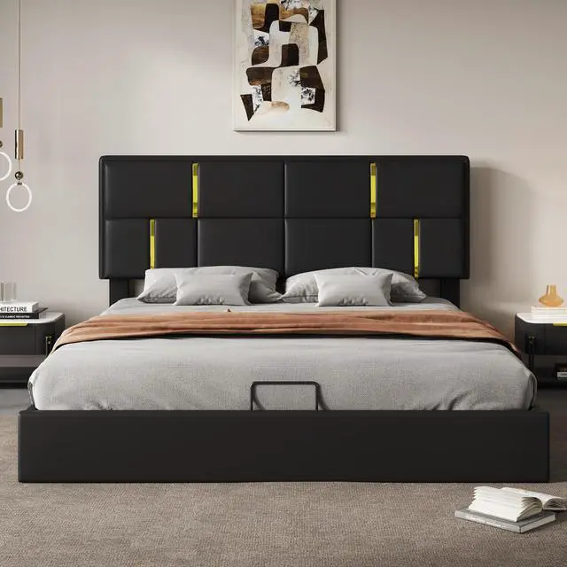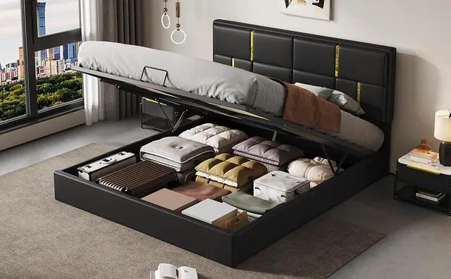 [Space Saving] The hydraulic storage system underneath the mattress is perfect for you to store quilts, bed sheets and other necessities. Functional and aesthetic, this bed will enhance any bedroom.