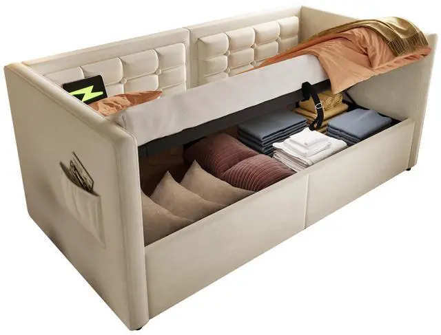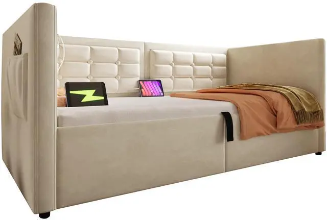 Convenient Charging Station: A round USB & Type-C charging station on the left bed board makes this sofa bed more modern. Whether you are watching TV or sleeping on the sofa bed, you can always charge your electronic devices.