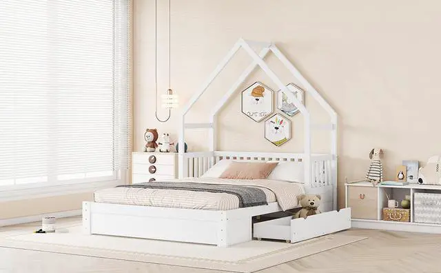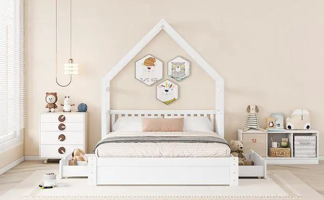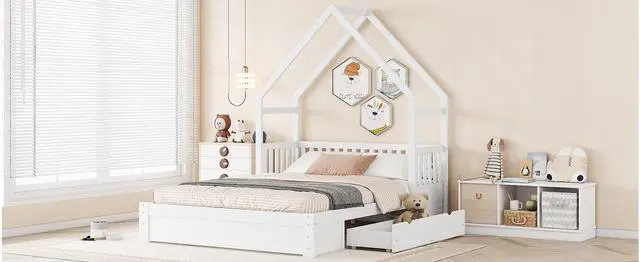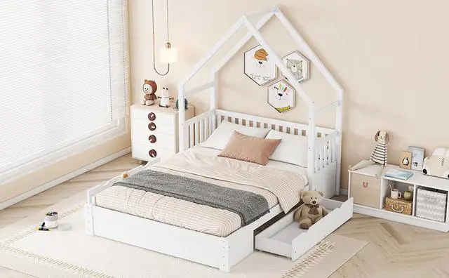 [Safety Guaranteed] The bed is fenced around the 15.3 '' height guardrails, preventing accidental falls. Featuring the characteristic of a window and fence, the house bed adds a rustic, country feel to your room.