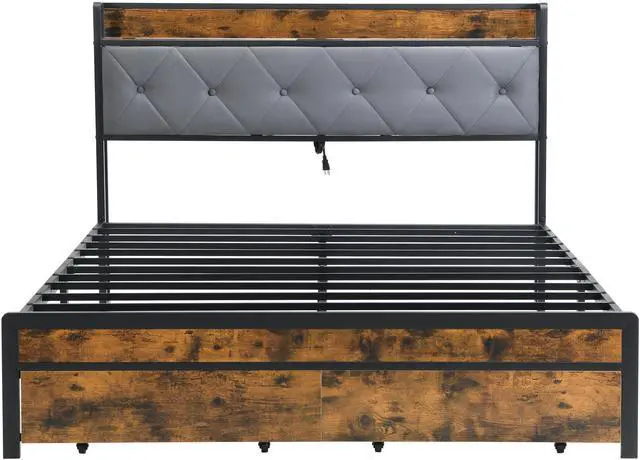 This storage KING bed features 2 spacious under-bed drawers with convenient rolling wheels, these drawers can be easily pushed in and pulled out, offering ample storage space for bed sheets, off-season clothing, and more.