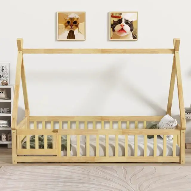 #2 [Bed Platform with Guardrails Design]The bed platform with guardrails not only provides better fun and joy, but also reduce any concerns about the safety. The guardrails around the bed are designed to have a door to made the bed have a completely closed fence.