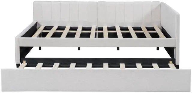 [Classic Design] This classic design day bed adopts a semi-closed design concept, linen fabric is dirt-resistant and wear-resistant, and equipped with twin size trundle, which is functional and beautiful.