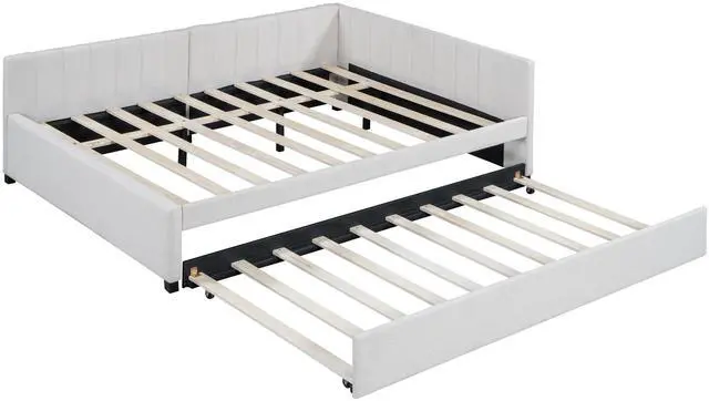 [Space-saving] This daybed comes with a twin size trundle. Perfect for small apartment or someone who love sleepovers. Simply roll out the trundle when it is needed and roll in when it's not in use.