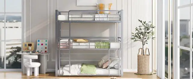 [Safety Guaranteed] The metal slats blend naturally into the already sturdy frame to give added ground-up support that provides stability. The bunk bed features guard rails for added safety.