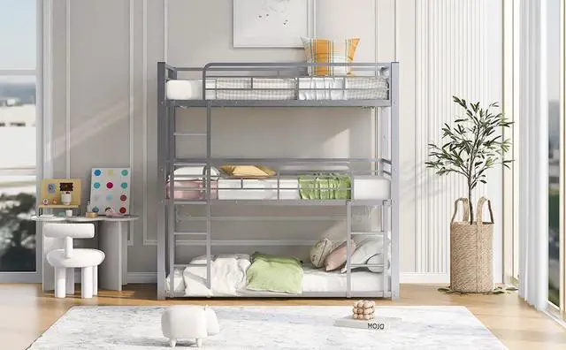 [Sturdy Construction] Made of high-quality solid metal with reliable construction, this bunk bed frame can last for long time use and ensure strong stability and durability.