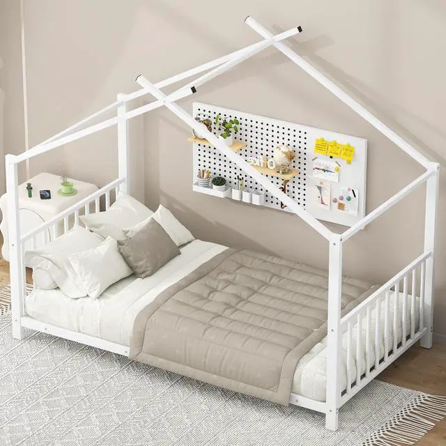 [Adorable House Bed Design] The whimsical house shape of this bed adds charm and character to any child's bedroom. This unique Montessori bed frame can be decorated to different style with your children, which offers a happy together time between you.