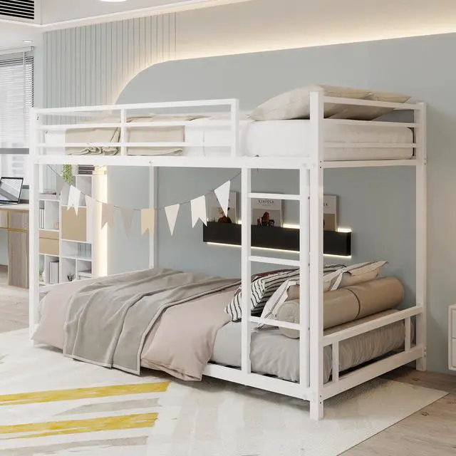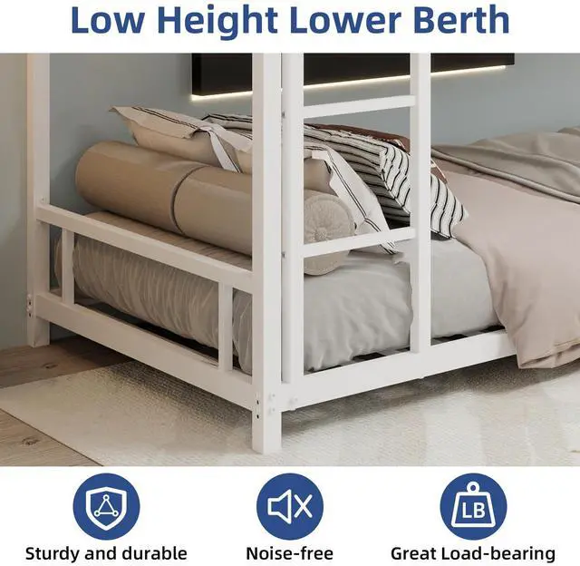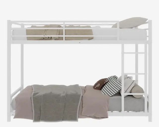 Construction & Secure Guardrail]: This twin over twin bunk bed is made of quality tested steel frame with anti-rust powder coated finish, eliminating excess wobbling. Upper bunk's safety rail is 12.36 -height, high enough to protect from accidently falling off.