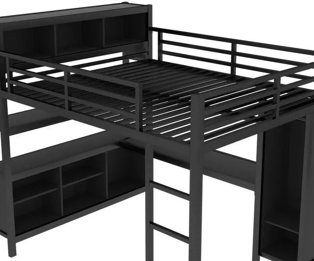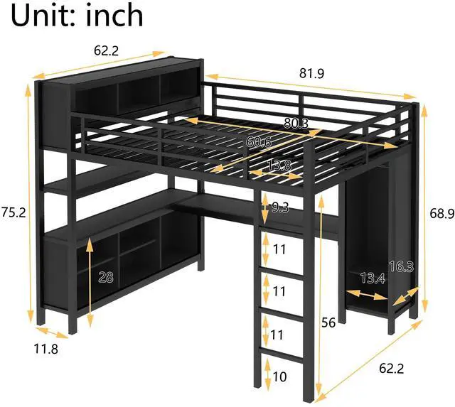 Space Saving: This metal bunk loft bed with wardrobedesk and storage shelves is designed for rooms with limited floor space. It's the perfect addition for growing teens, giving them the freedom to rest and entertain!