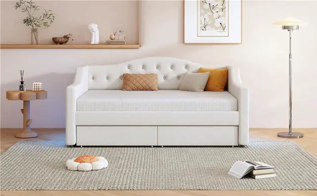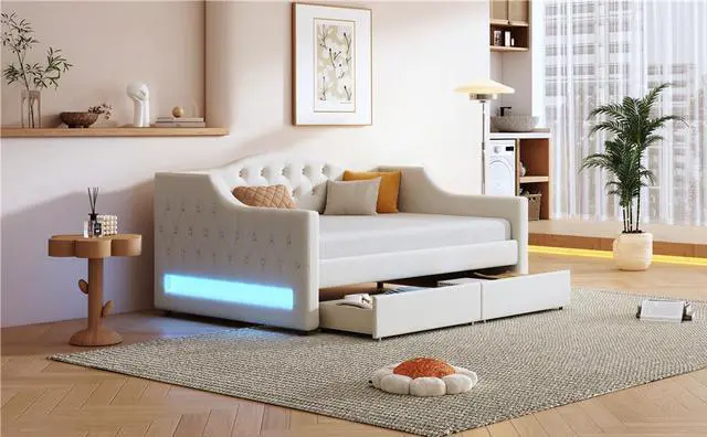[Linen Upholstered Daybed] The high-quality upholstery with thickly padded sponge at the back and all sides offers cozy comfort. This Upholstered Daybed with covered linen provides soft hand feeling and get superior experience for you!