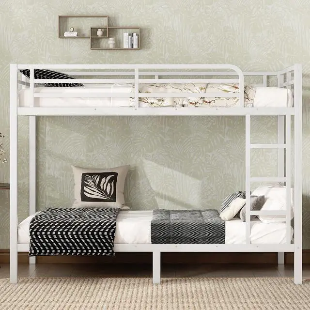 • Metal Twin XL over Twin XL Bunk Bed for Teens and Adults,Space-Saving/Noise Reduced/No Box Spring Needed,White
