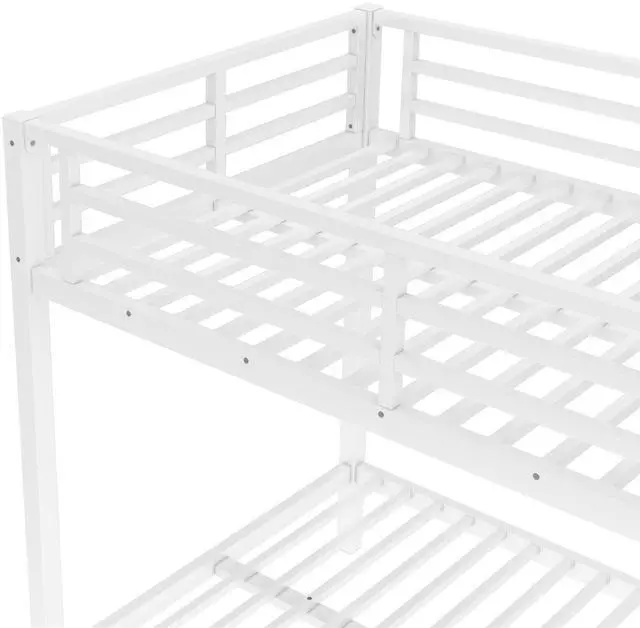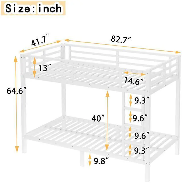 Safety Design: Our Twin XL over Twin XL bunk bed has 40 metal slats that has strong supporting force. Bottom bed with thicker legs for reinforcement. The guardrail around the upper bed which enhance safety and prevent accidental.