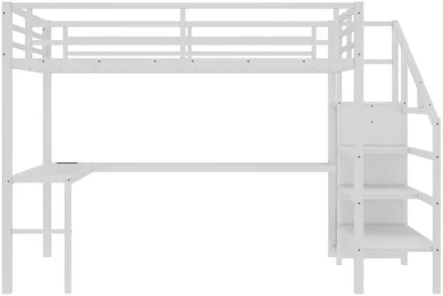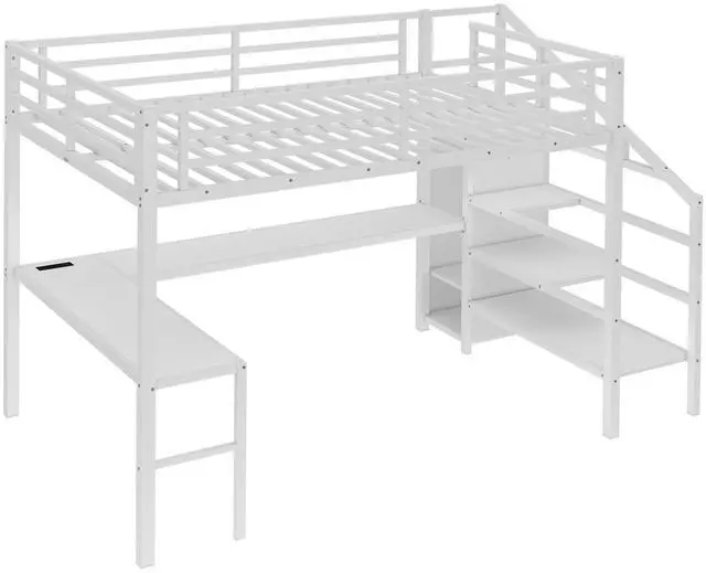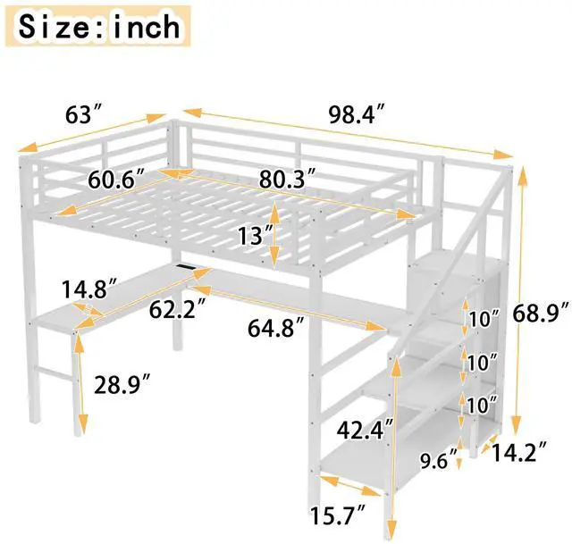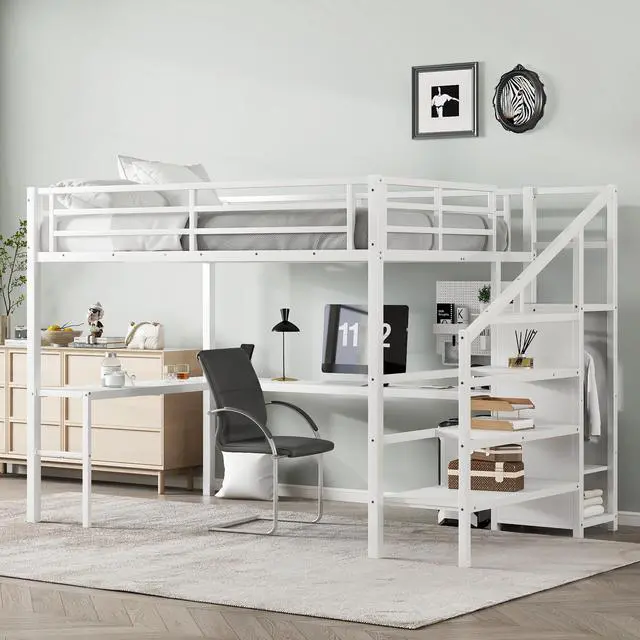Solid Metal Loft Bed - The bed frame is made of metal for strength and stability, and the upper bunk can hold up to 350 pounds. Queen size loft bed frame comes with sturdy stairs so kids can safely climb to the upper bunk and full-length guardrails keep kids safe while sleeping.