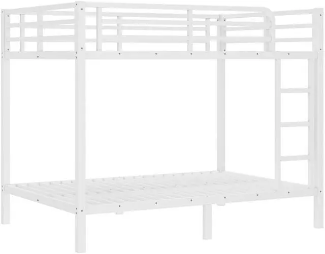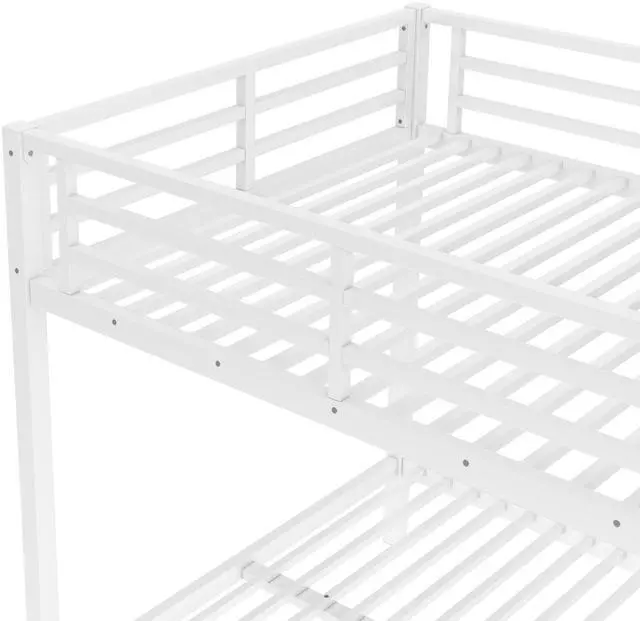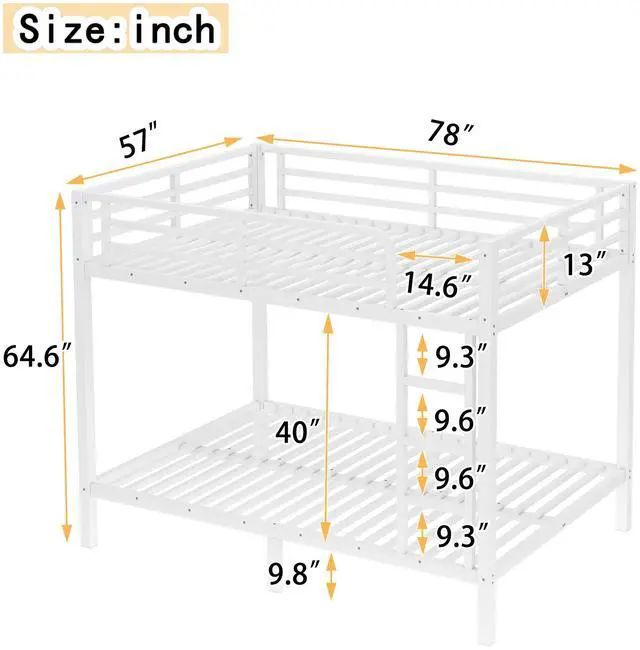Safety Design: Our Full over Full bunk bed has 40 metal slats that has strong supporting force. Bottom bed with thicker legs for reinforcement. The guardrail around the upper bed which enhance safety and prevent accidental.