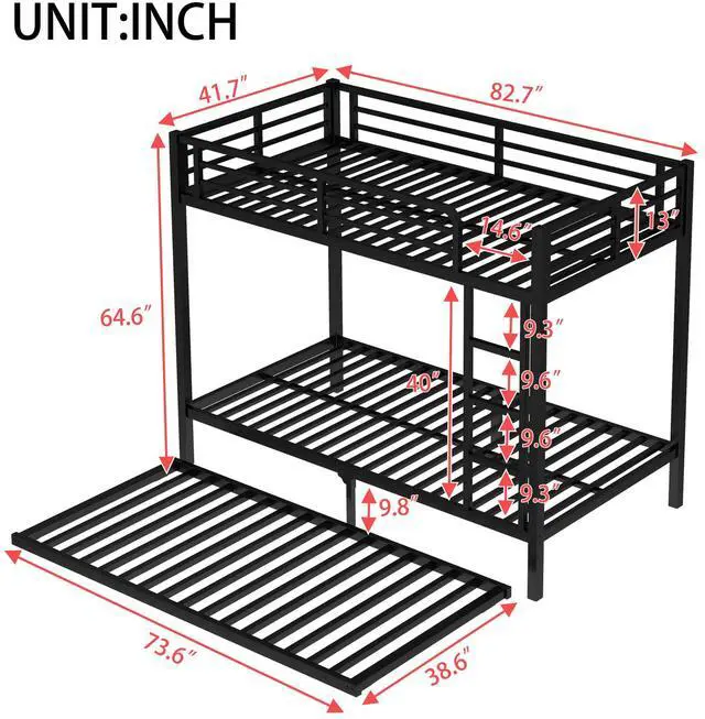 Solid construction: Made by strong and heavy duty metal provides durability and strong structure make the bunk bed more stable. The bunk bed adopts durable electrostatic powder coating, environmental protection, non-toxic and pollution-free, not easy to fade, the use cycle is long, and easy to clean.