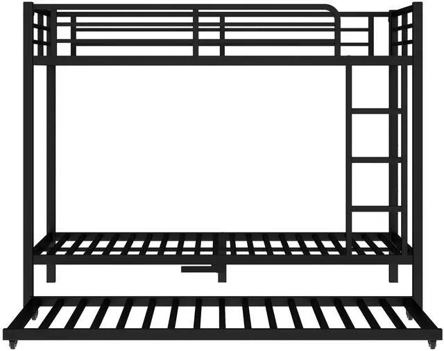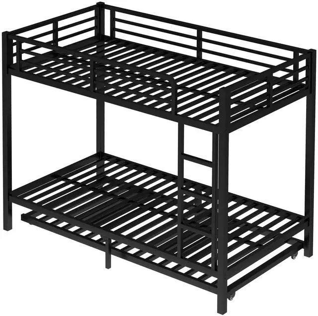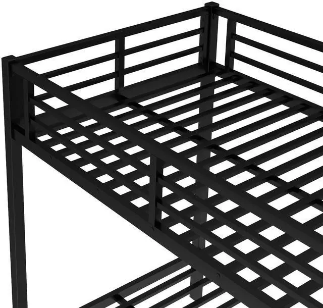 Safety Design: Our Twin XL over Twin XL bunk bed has 40 metal slats that has strong supporting force. Bottom bed with thicker legs for reinforcement. The guardrail around the upper bed which enhance safety and prevent accidental.