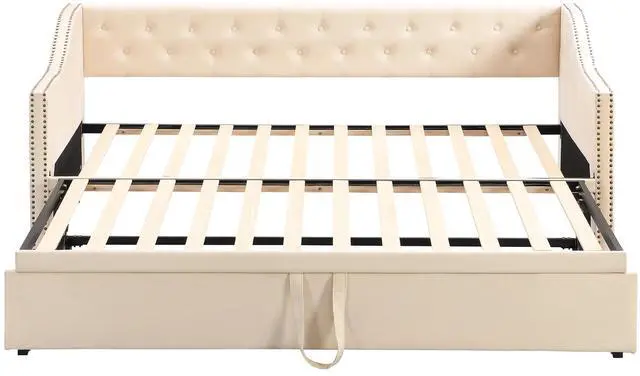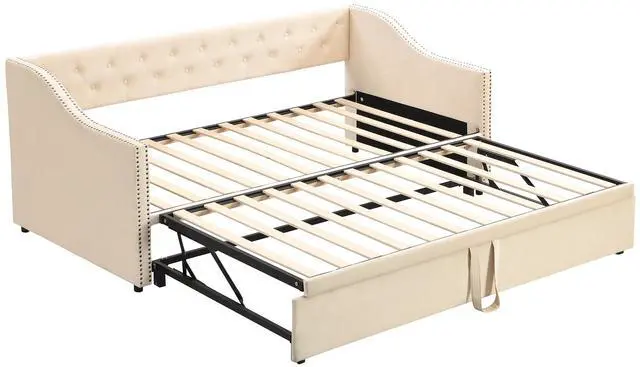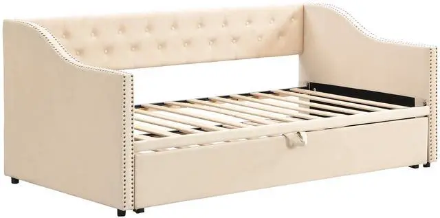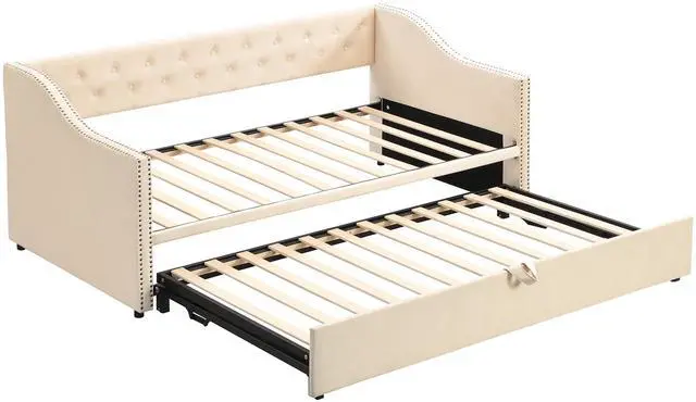 • Twin Size Upholstered daybed with Pop Up Trundle, Beige