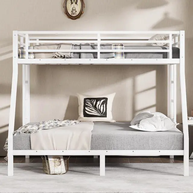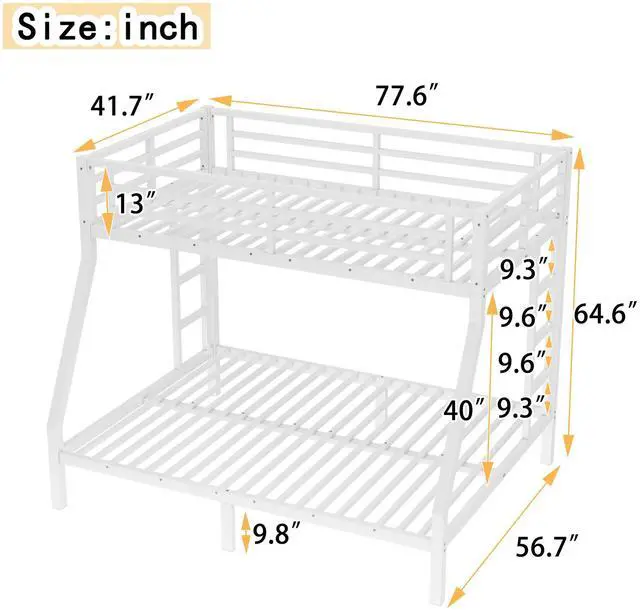 Safety Design: Our Twin over Full bunk bed has 38 metal slats that has strong supporting force. Bottom bed with thicker legs for reinforcement. The guardrail around the upper bed which enhance safety and prevent accidental.