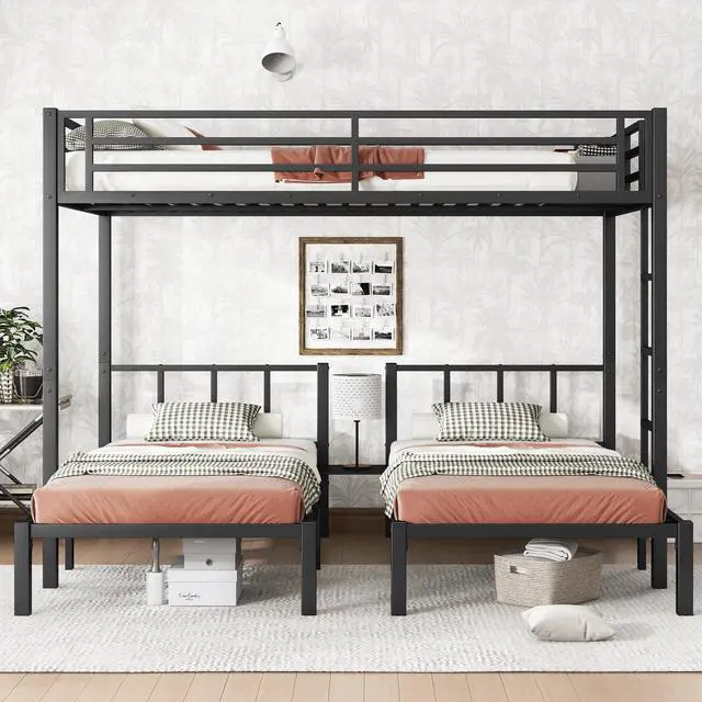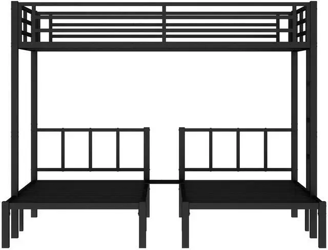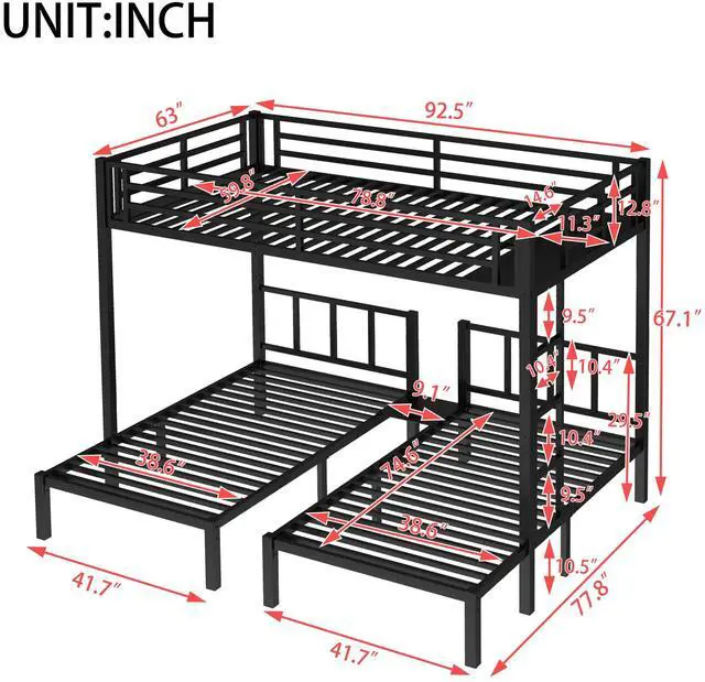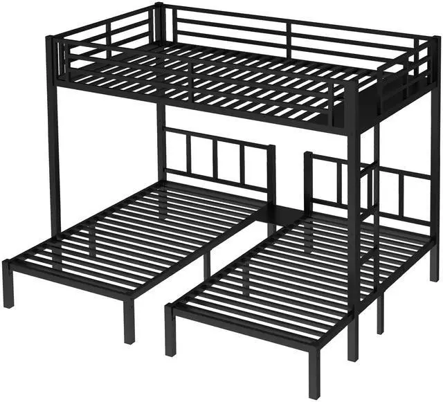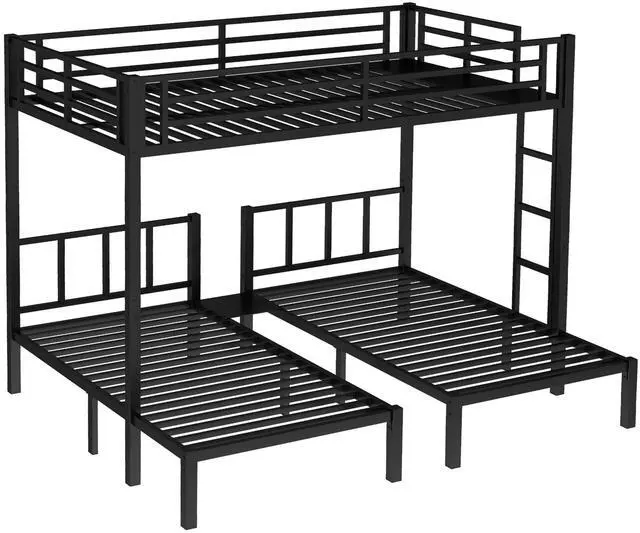 Detachable Triple Bunk Bed--This metal triple bed frame can be used as L shape triple bunk bed, but also can be divided into three separate beds. It is a good choice when your children grow up and need private space.