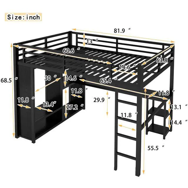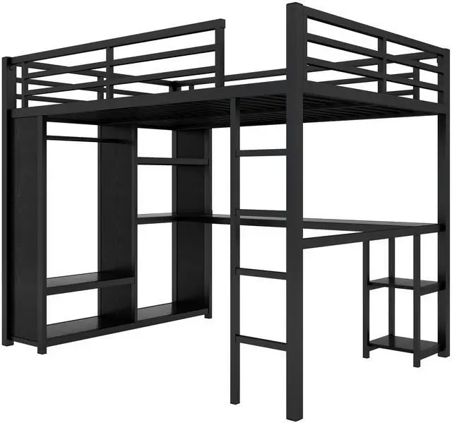 [Workstation and Storage] The bed comes with a desk that can be used for studying or working. The storage shelves next to the desk can hold most of the items you need for work or leisure.