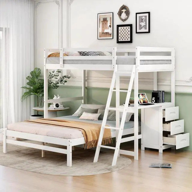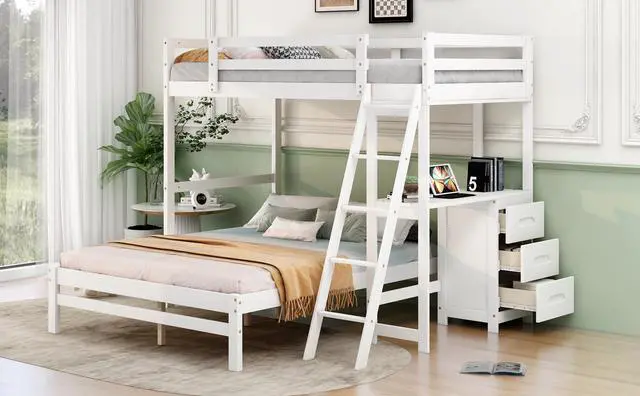 [Large Storage Space] This versatile bed can meet your various needs. Down bed can be placed directly under the bed or on the other side. loft bed with desk and drawers, makes it easy for you to put a lamp on or store books and other items.