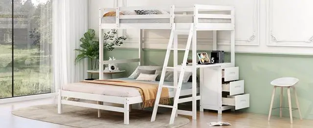 [Twin over Full] Coming with twin over full bunk bed features one twin size loft bed with storage and one full size platform bed for accommodating your kids or any overnight sleepers.