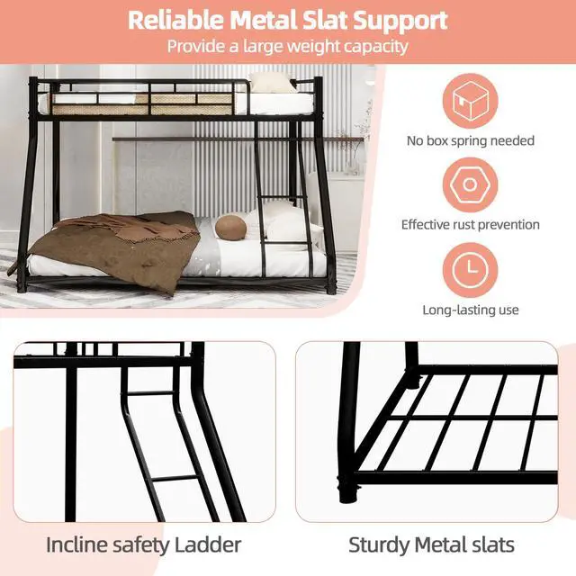 Solid Construction: This bunk bed is made of strong and sturdy metal provides longevity and stability. There are supporting leg in the middle and the metal slats support the mattresses not to slide and also increase the mattresses life.
