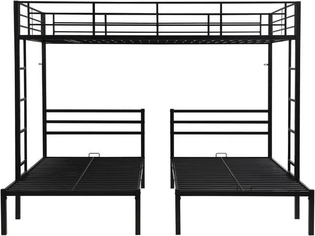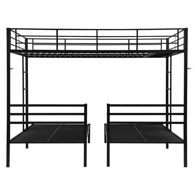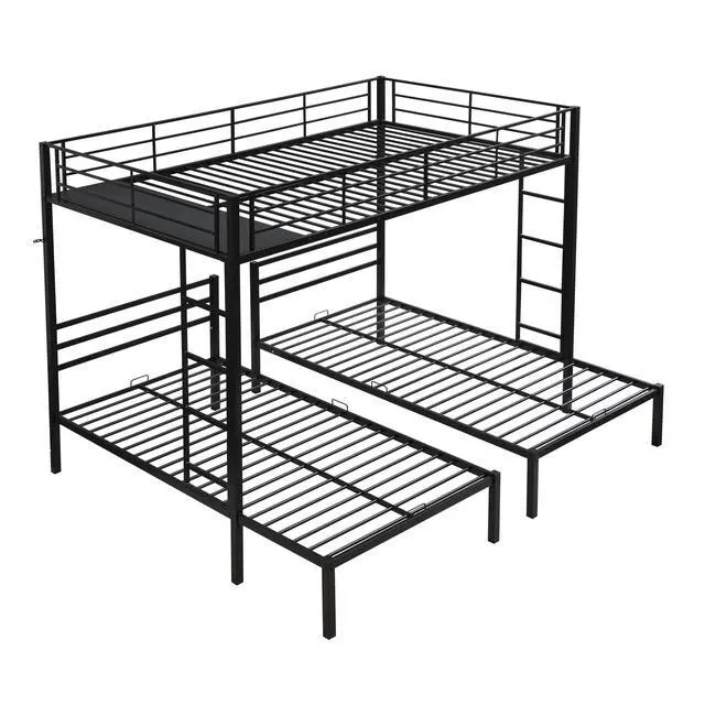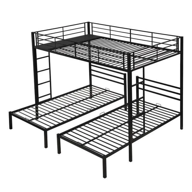 This triple bunk bed combined with 1 full size upper bunk and 2 twin size bottom bunk. It is the perfect solution for extended family, guests, or hosting your childs friends for a sleepover.
