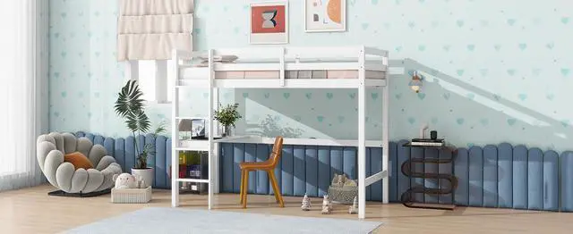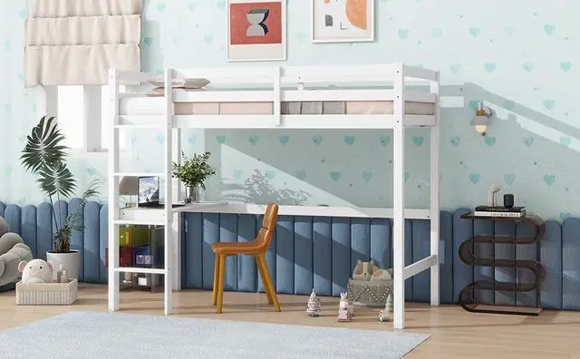 #2 [Comprehensive Design]The feature of this loft bed not only ensures better sturdy construction, but also reduce safety concerns, the desk offering the kids a quiet, cozy place for reading and writing. In addition, the built-in ladder against the upper bunk is designed with a safe and wider width to provide more spacious steps and solid support, making it easier to climb up and down the ladder.