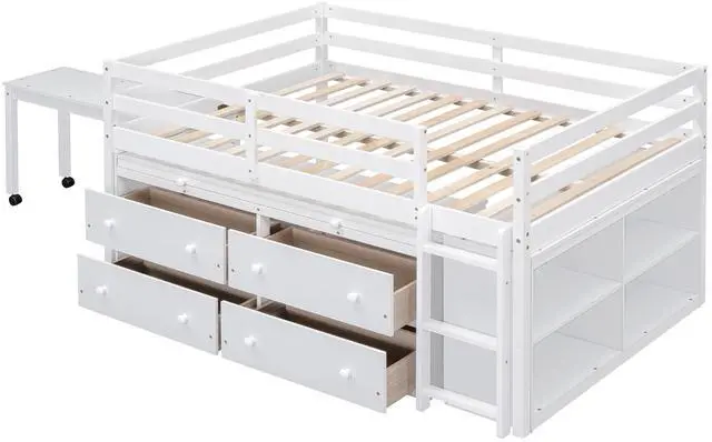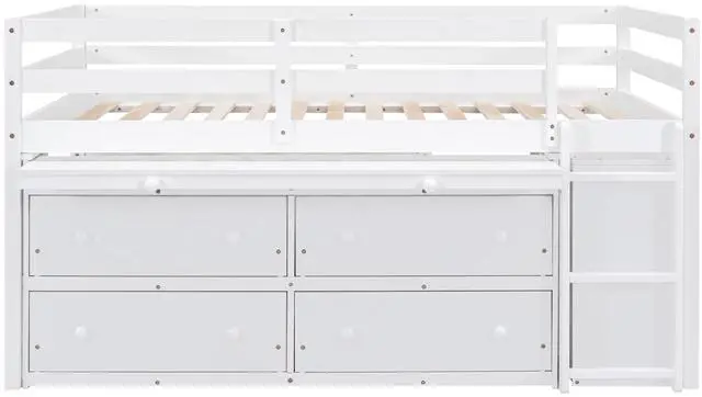 [Space-saving] Four big drawers in front of the loft bed and the lateral shelves can provide enough space to stock your clothes, books, toys or any small items you like. You can also put some decorations on it to make the bed look even better