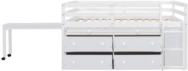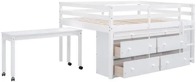 [Solid Construction] This muti-functional loft bed is crafted from a solid pine wood frame, with commercial grade MDF board for quality control and durability. Guardrails are solidly attached for added safety.