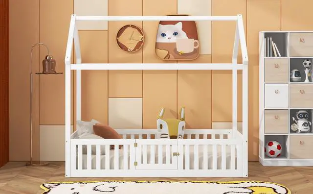 [Fence with Door] The bed is fenced around the perimeter, but it is not a completely enclosed space because it has a small door over the fence. Kids can enter and exit freely through this small door.