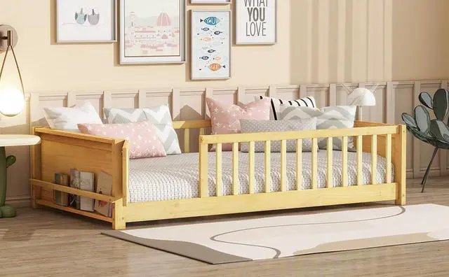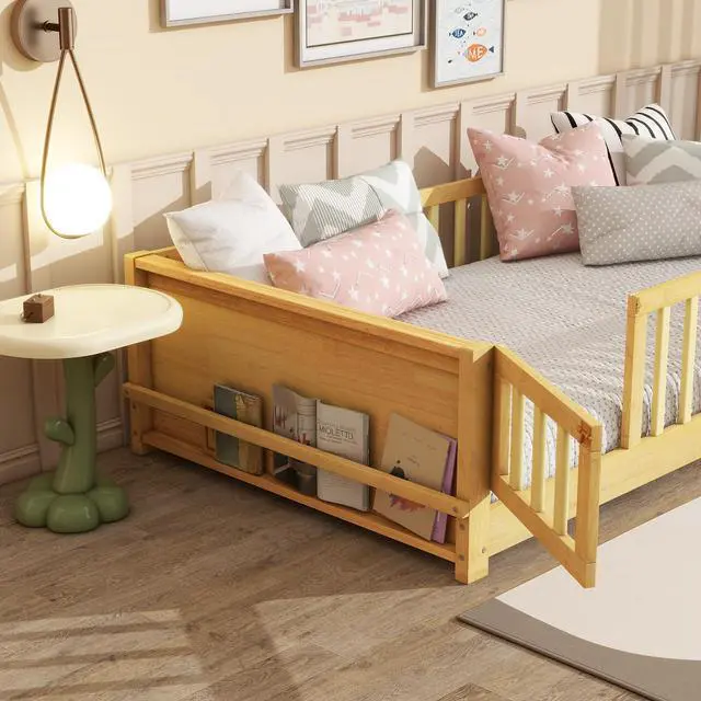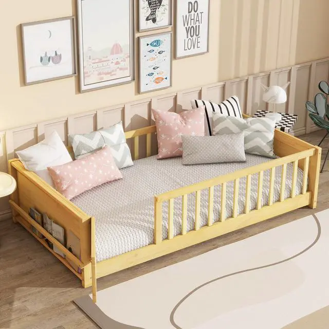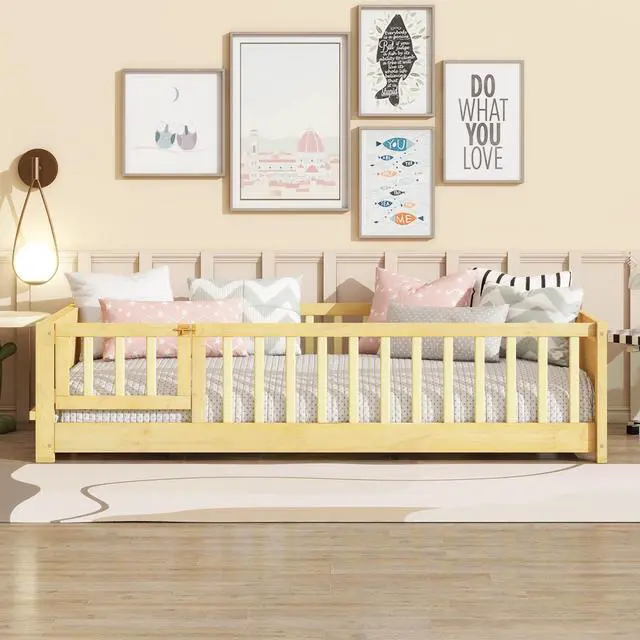#1[Practical and Protection Design] The floor bed is an ideal place to sleep and have fun in the slatted bed platform. The bed is most suitable to those compact rooms and limited space with guardrails around the bed to protect from any accidental falling off. The bed is equipped with a revolving door, which has 2 hinges and a steel latch.