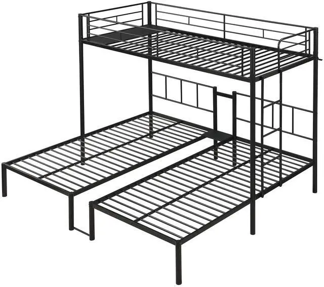 This triple bunk bed combined with 1 twin size upper bunk and 2 twin size bottom bunk. It is the perfect solution for extended family, guests, or hosting your childs friends for a sleepover.