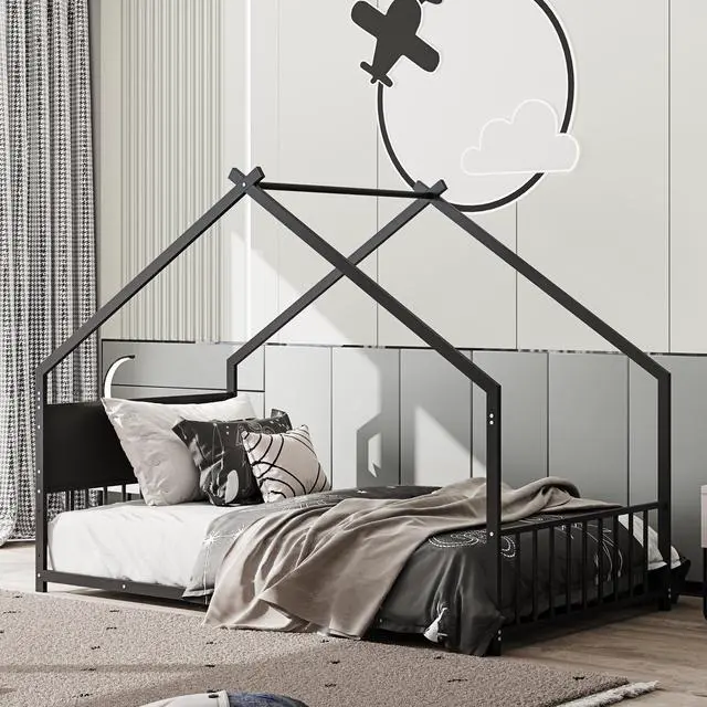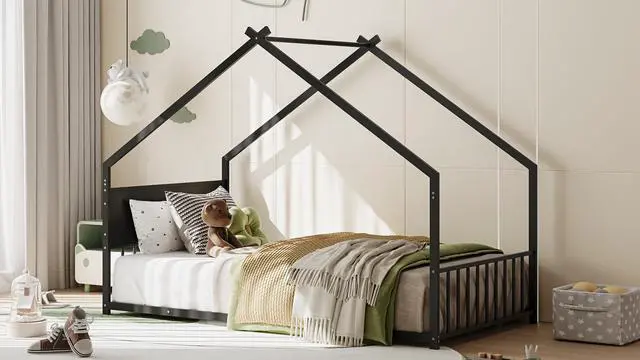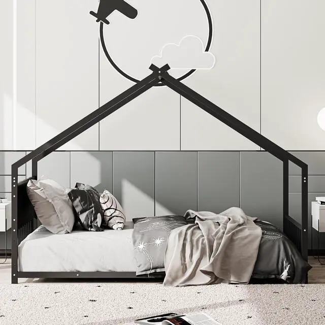 Safer Floor Bed for Boys and Girls: This children's house bed is designed to be low to the ground, thereby minimizing safety concerns. It is also conveniently accessible, allowing children to easily climb in and out, fostering a sense of independence. The slats are positioned lower but elevate the mattress off the floor, ensuring the bed remains clean and dry.