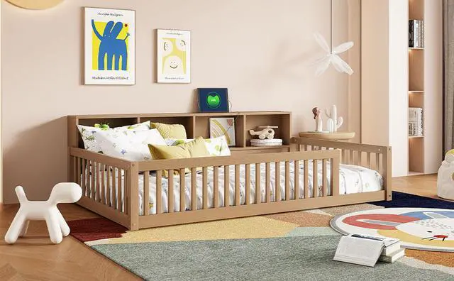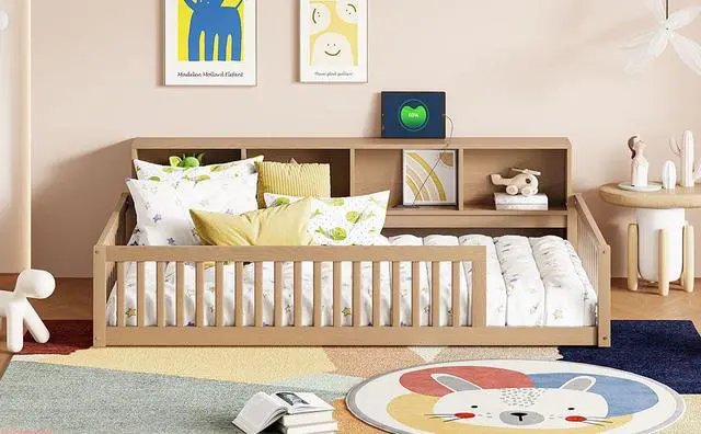 [Storage Space] There are 3 built-in storage cabinets on the side of the floor bed, which provide you plenty of storage space. Whether it's books or dolls, they can all find their place.