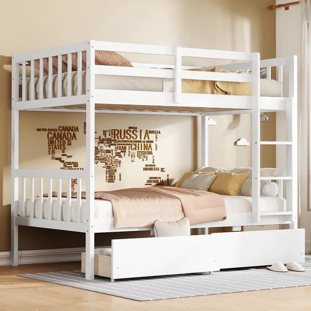 #3/ 1.1 [Safety and Quality Guaranteed]This bunk bed is crafted from quality rubber wood, plus the 13-slat upper and lower bed platforms, providing lasting sturdiness and durability. The high guardrails surrounding the upper bed will further prevent from accidental falling off the bed.