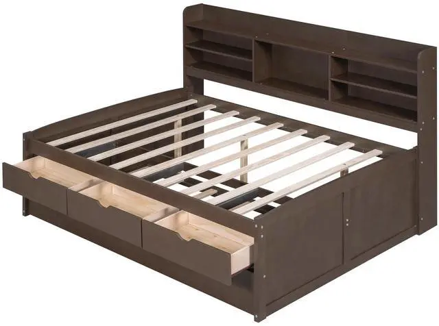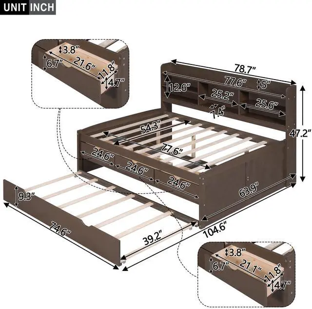 [Storage Drawers] This wooden bed also features three large storage drawers which offers large storage space for you..
