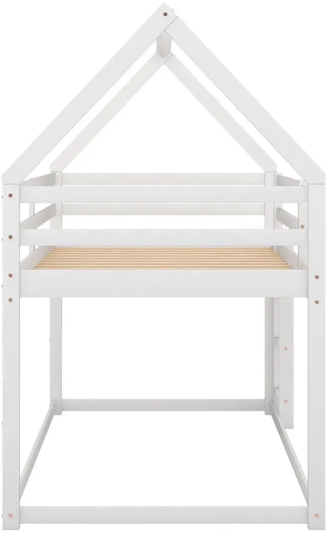 1. The house-shaped frame can meet your imaginative needs. 2. Low bunk design guarantee safety for you. 3. Made of pine wood and MDF, it can serve your family for many years. 4. Assembly required